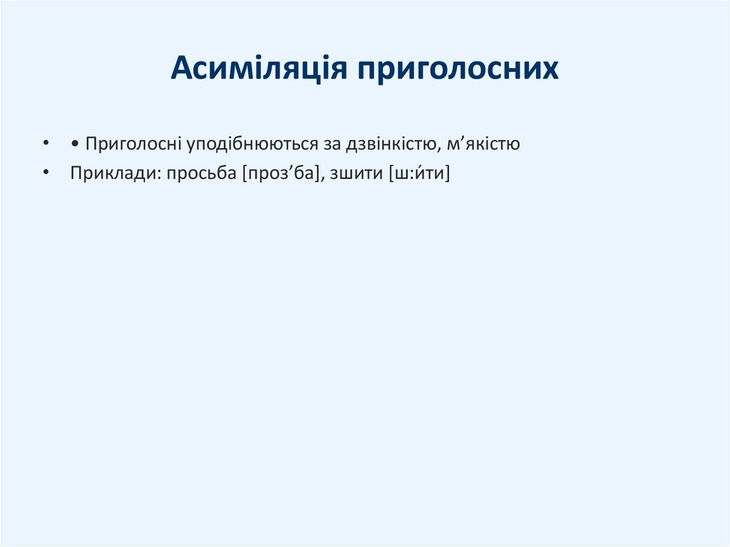 Асиміляція приголосних• • Приголосні уподібнюються за дзвінкістю, м’якістю