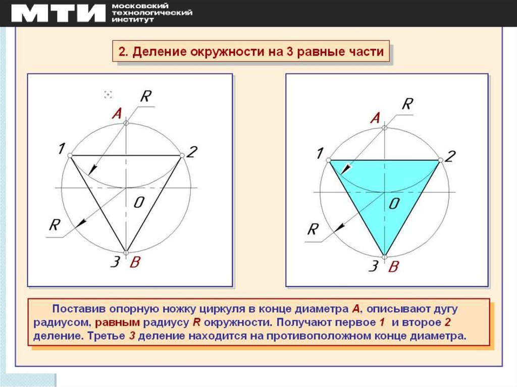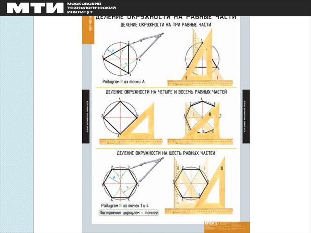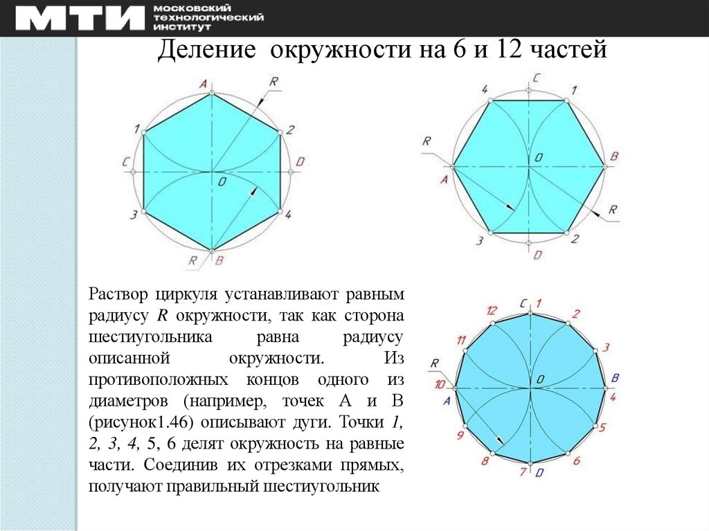 Деление окружности на 6 и 12 частейРаствор циркуля устанавливают равным