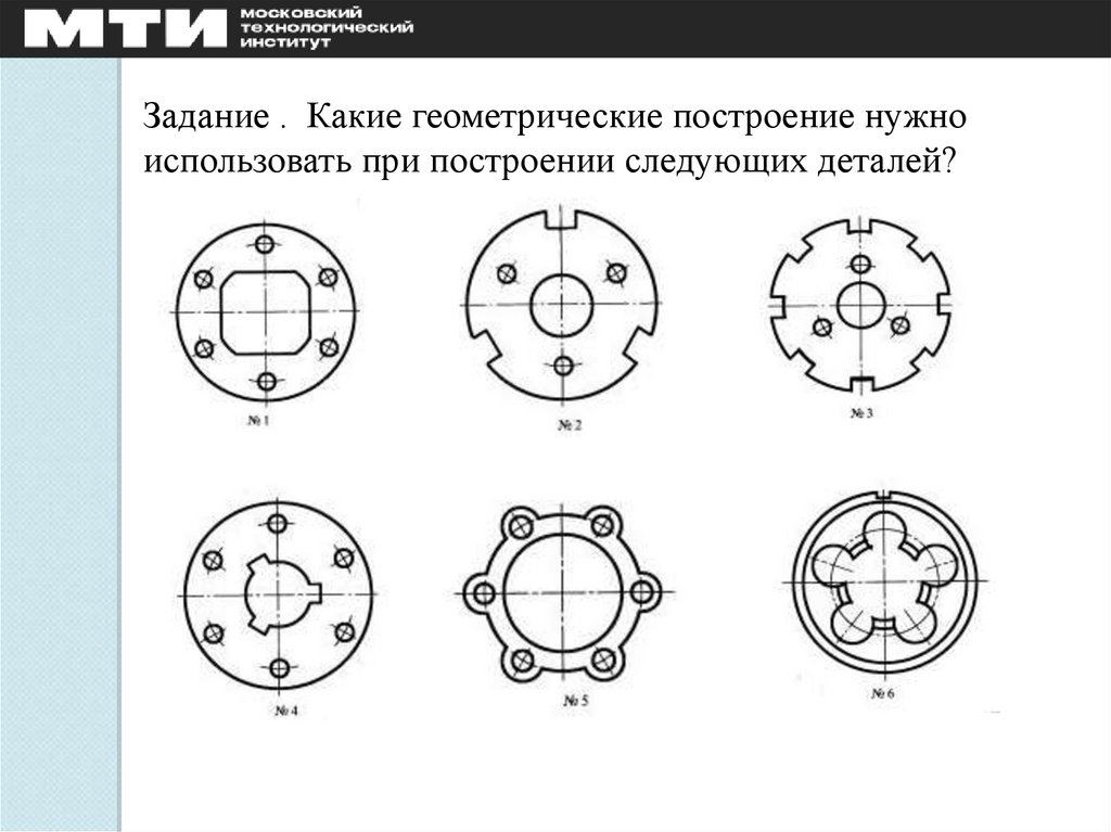 Задание . Какие геометрические построение нужноиспользовать при построении следующих деталей?
