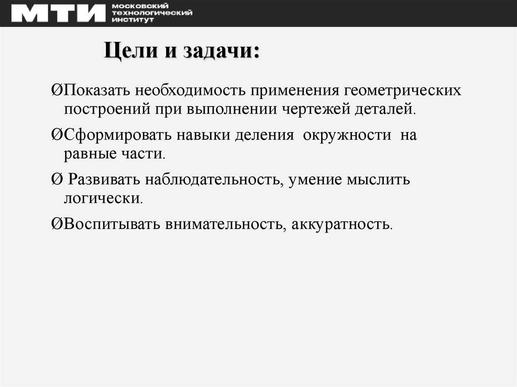 Цели и задачи:ØПоказать необходимость применения геометрических