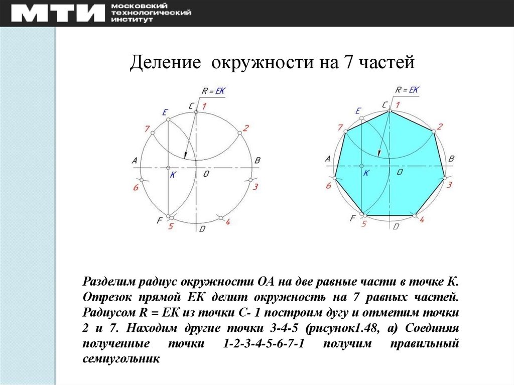полученные точки 1-2-3-4-5-6-7-1 получим правильный