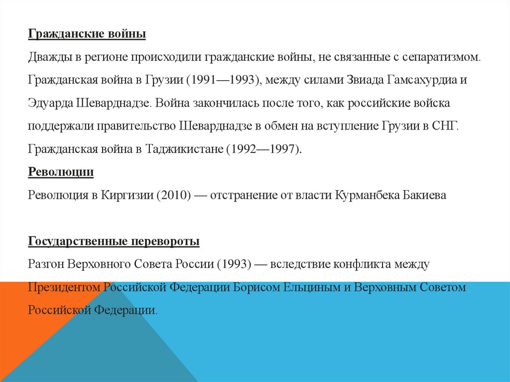 Гражданские войныДважды в регионе происходили гражданские войны, не связанные с сепаратизмом.