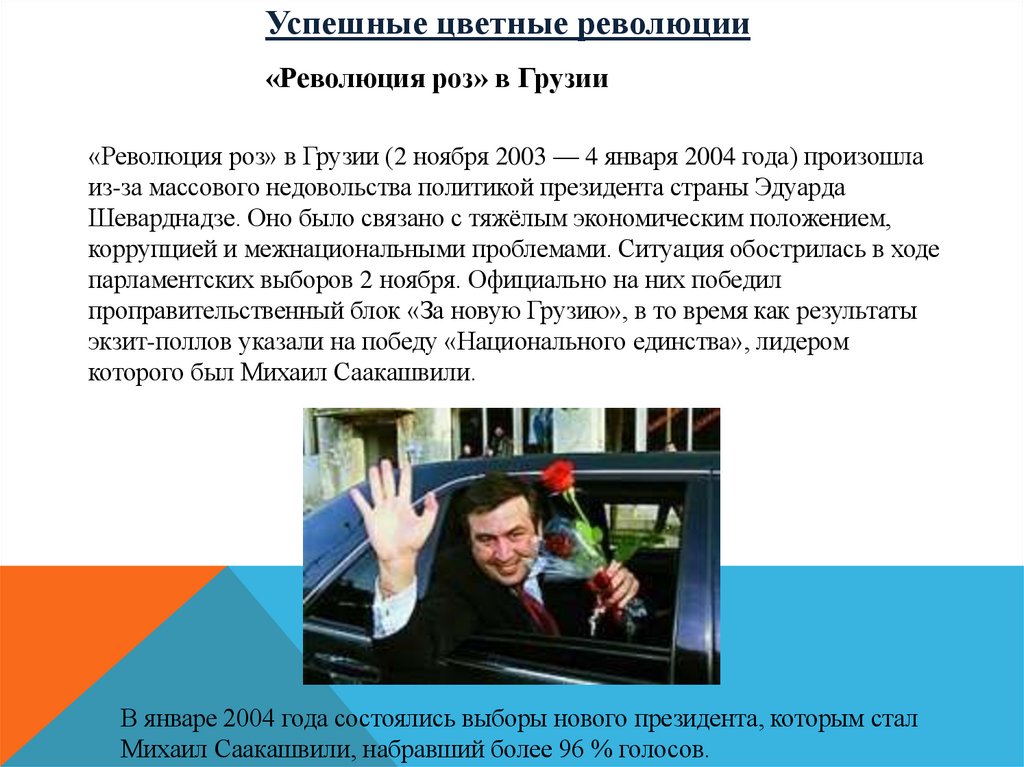 «Революция роз» в Грузии (2 ноября 2003 — 4 января 2004 года) произошла
