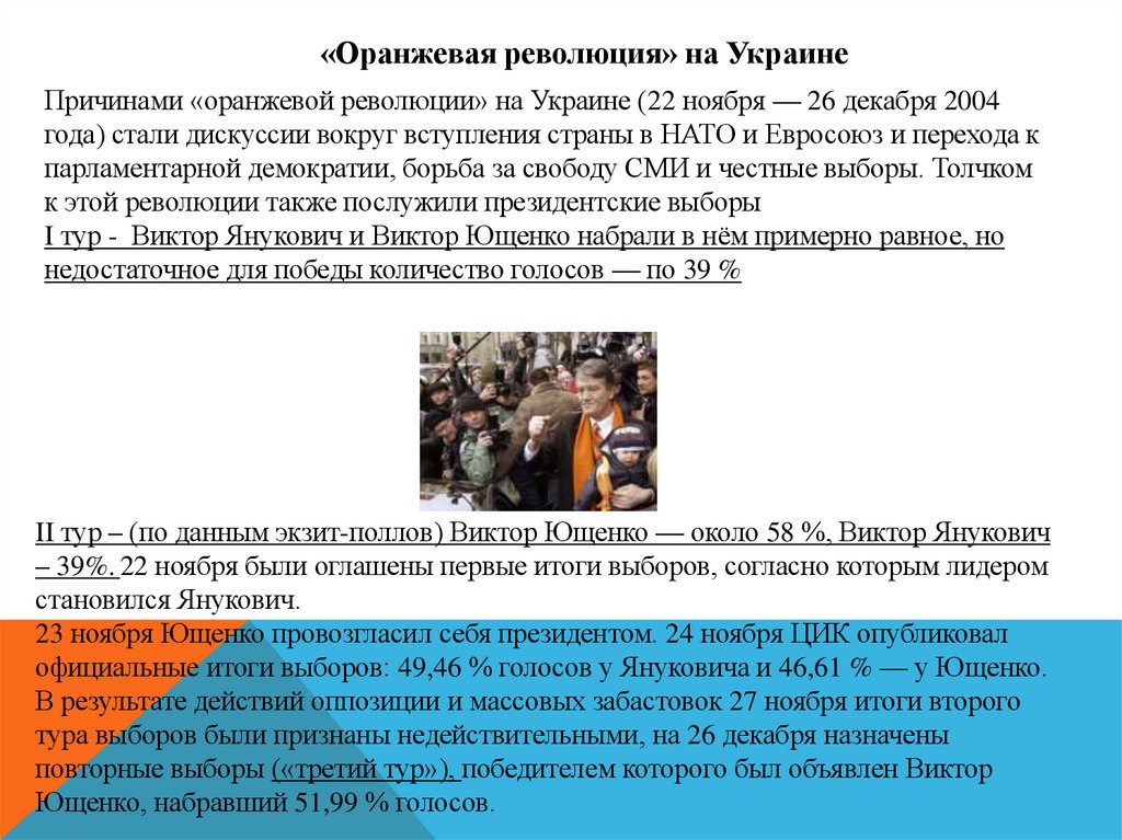 «Оранжевая революция» на УкраинеПричинами «оранжевой революции» на Украине (22 ноября — 26 декабря 2004