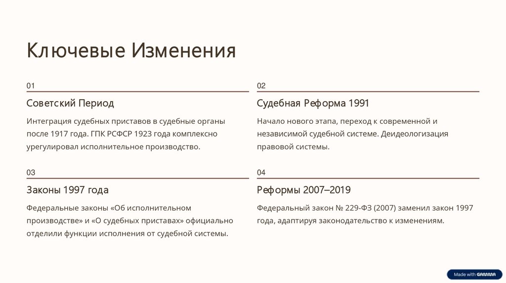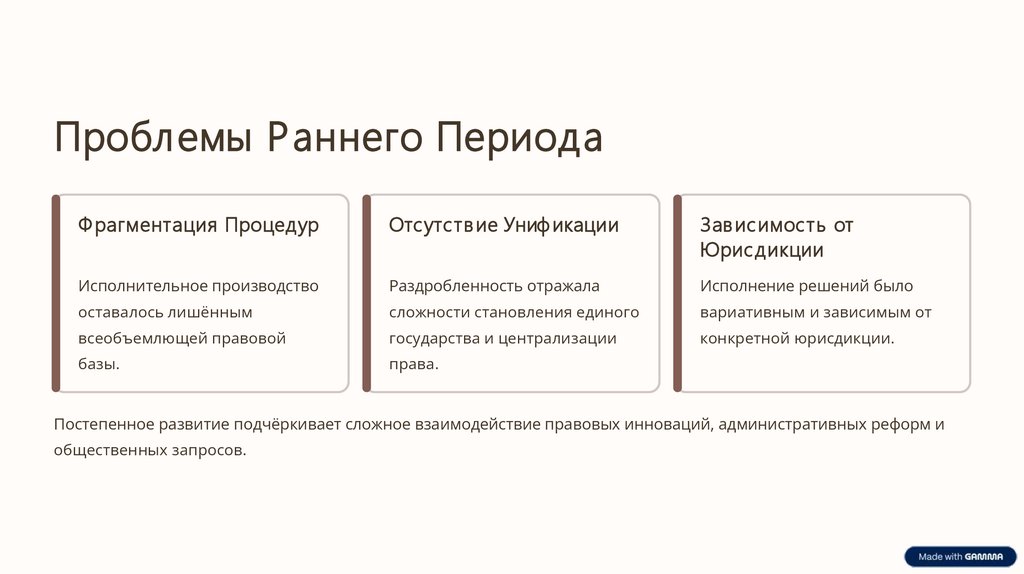 Постепенное развитие подчёркивает сложное взаимодействие правовых инноваций, административных реформ и