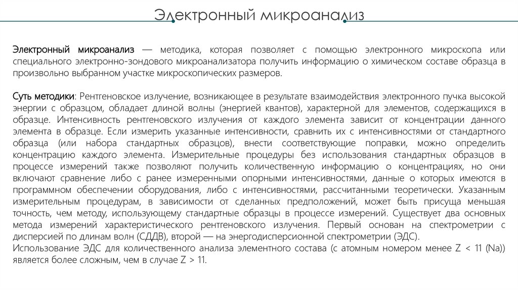 Использование ЭДС для количественного анализа элементного состава (с атомным номером менее Z < 11 (Na))
