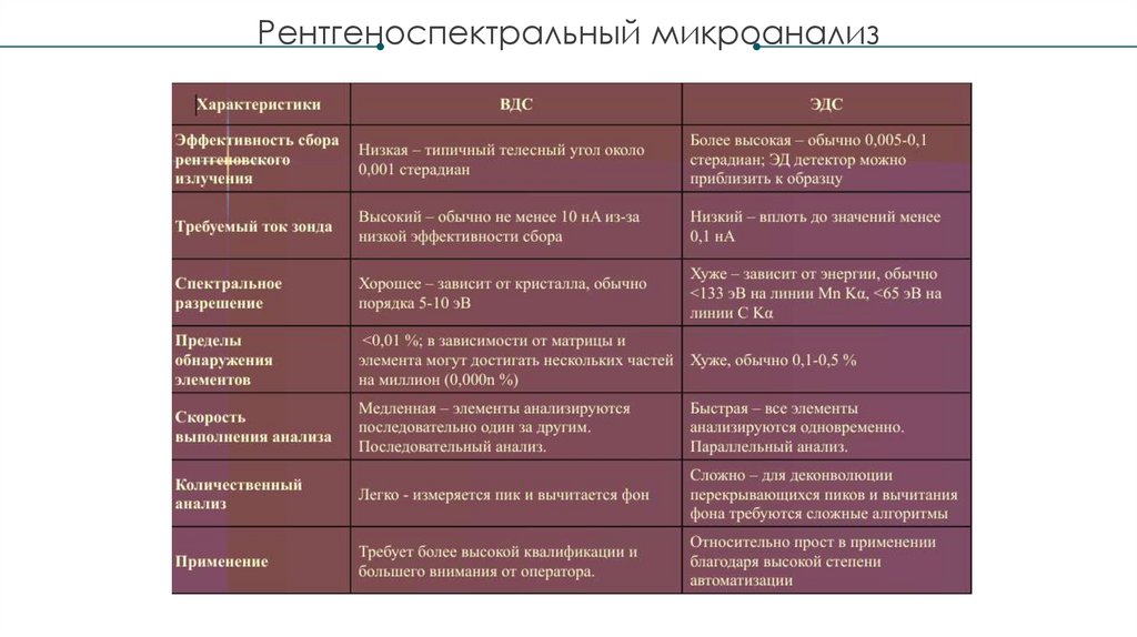 дисперсией по длинам волн (СДДВ), второй — на энергодисперсионной спектрометрии (ЭДС).