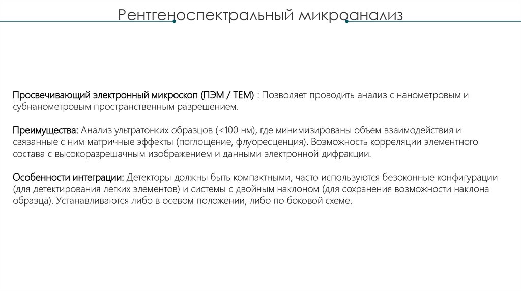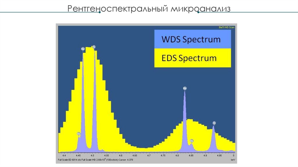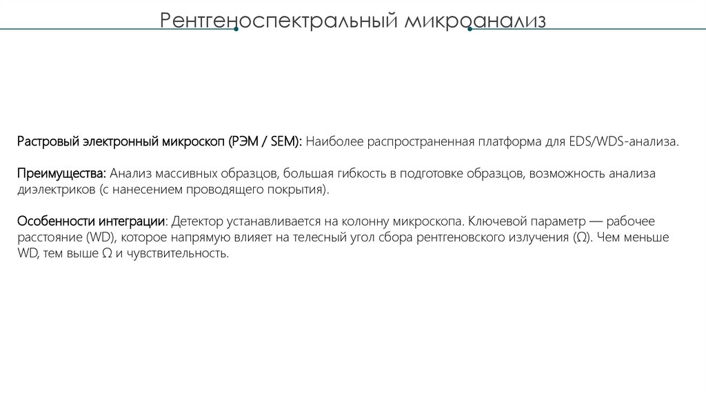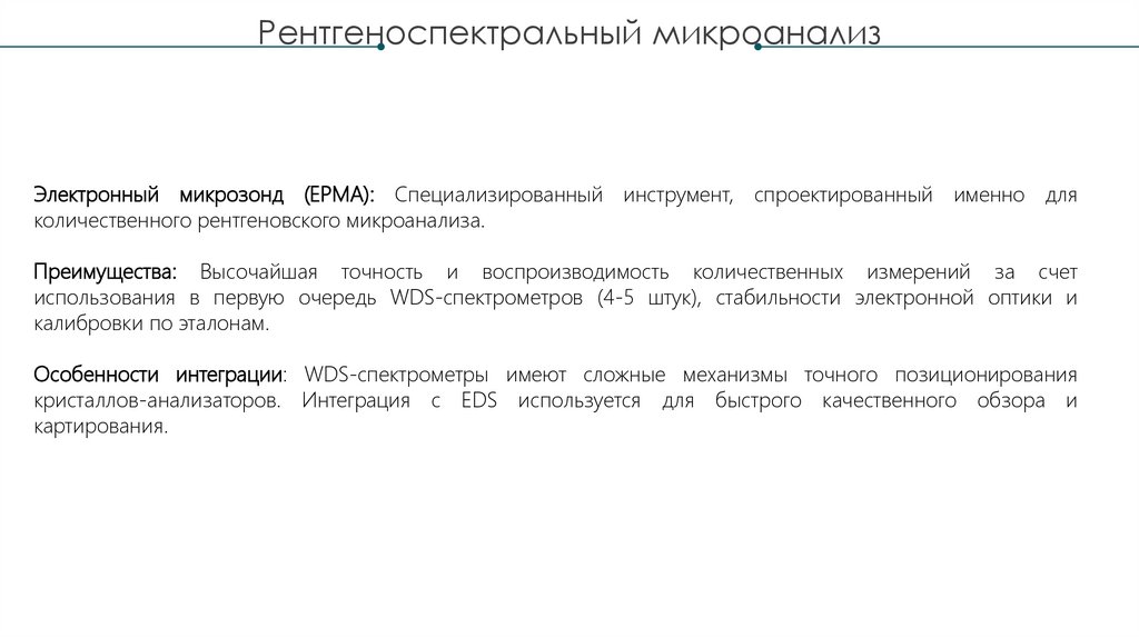 кристаллов-анализаторов. Интеграция с EDS используется для быстрого качественного обзора и