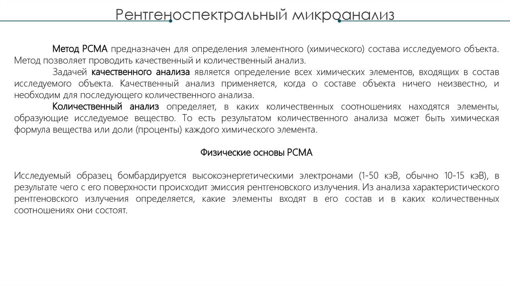 Рентгеноспектральный микроанализМетод РСМА предназначен для определения элементного (химического) состава исследуемого объекта.