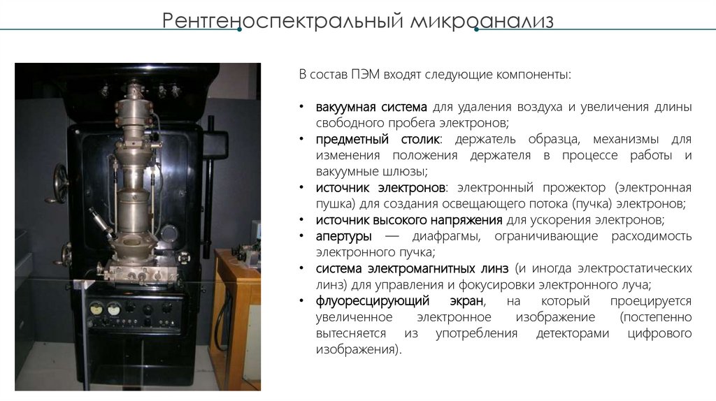 микроскопа, на котором был смонтирован рентгеновский спектрометр. Современные устройства, как правило,