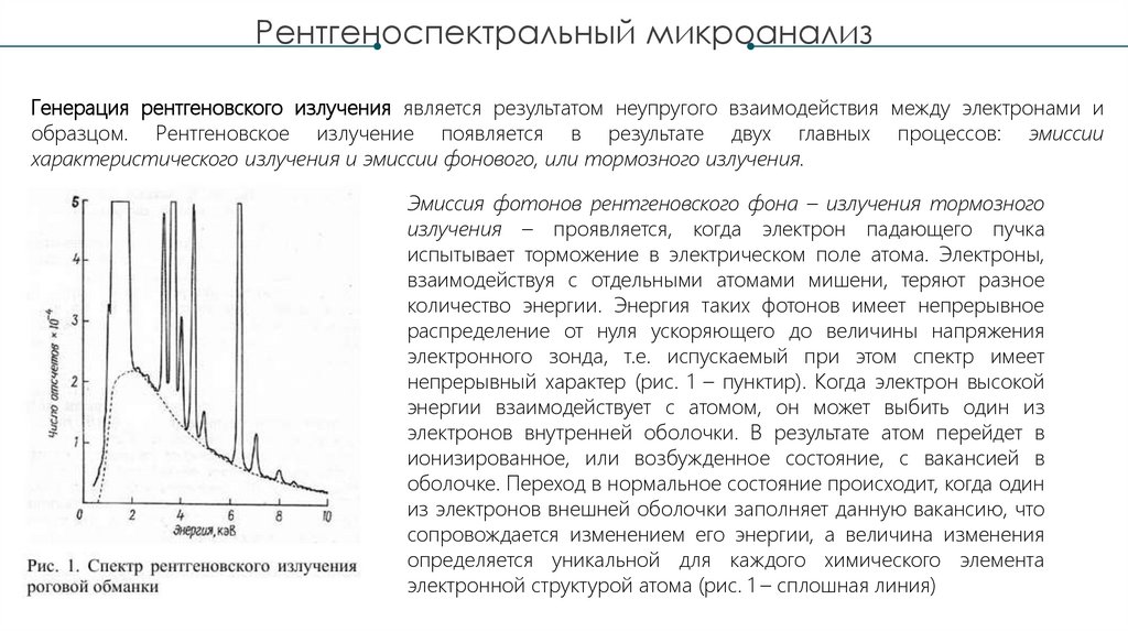 Рентгеноспектральный микроанализГенерация рентгеновского излучения является результатом неупругого взаимодействия между электронами и