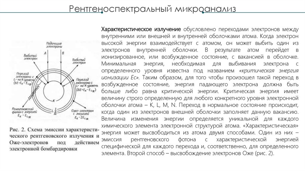 Рентгеноспектральный микроанализХарактеристическое излучение обусловлено переходами электронов между