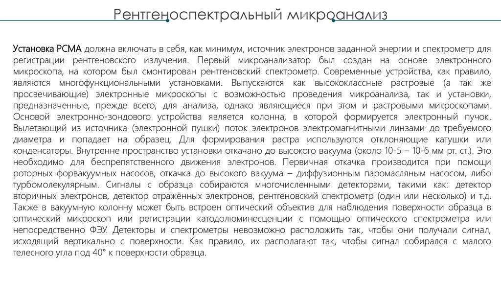 Рентгеноспектральный микроанализУстановка РСМА должна включать в себя, как минимум, источник электронов заданной энергии и спектрометр для