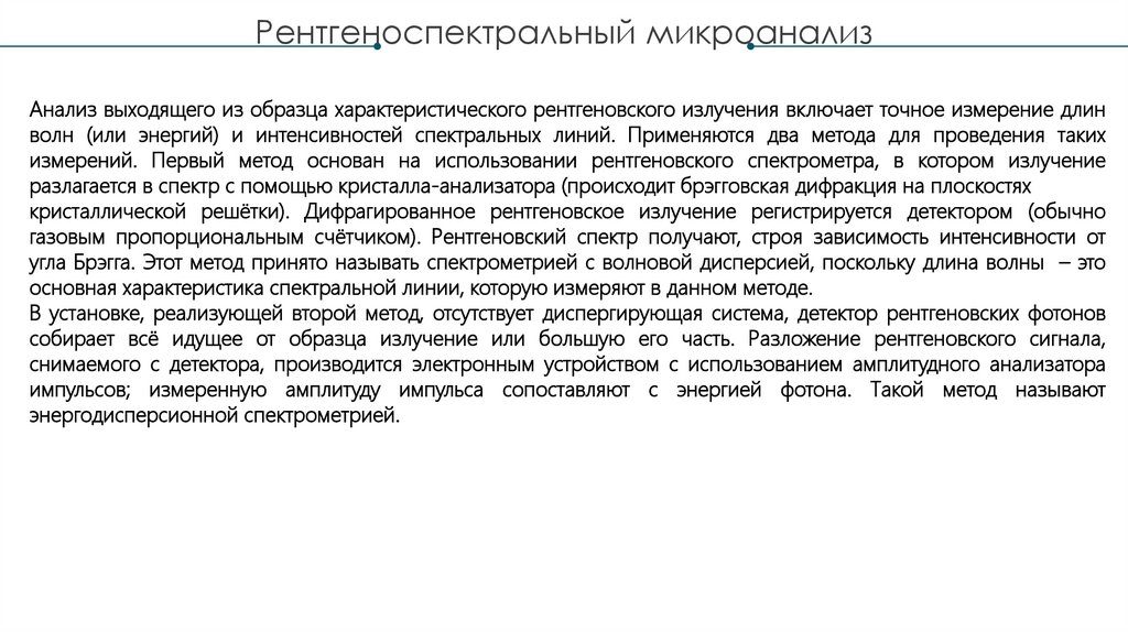 Суть методики: Рентгеновское излучение, возникающее в результате взаимодействия электронного пучка высокой