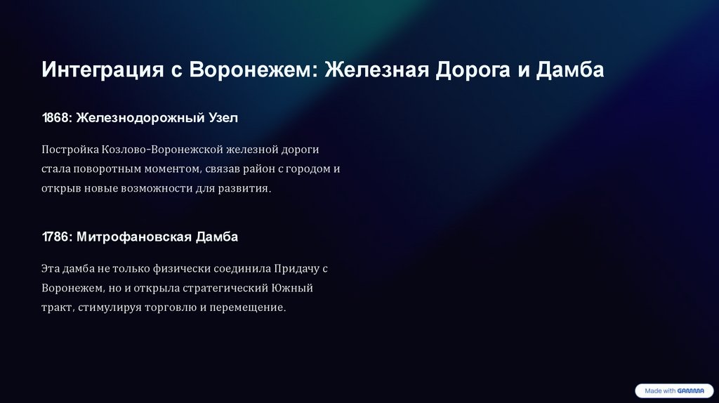 Интеграция с Воронежем: Железная Дорога и Дамба1868: Железнодорожный Узел