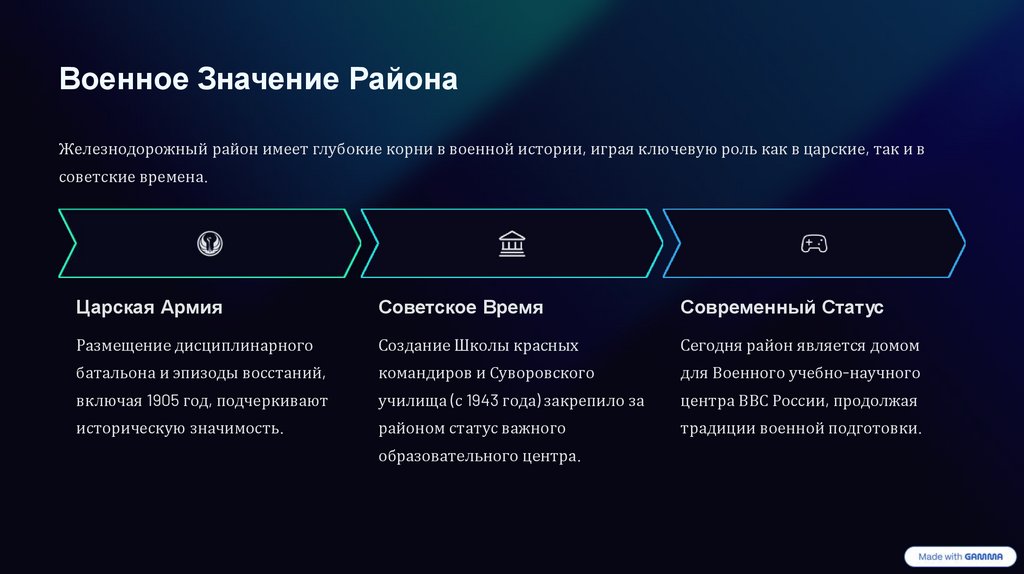 Военное Значение РайонаЖелезнодорожный район имеет глубокие корни в военной истории, играя ключевую роль как в царские, так и в