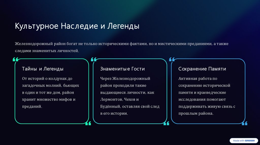 Кул ьт урное Наследие и ЛегендыЖелезнодорожный район богат не только историческими фактами, но и мистическими преданиями, а также