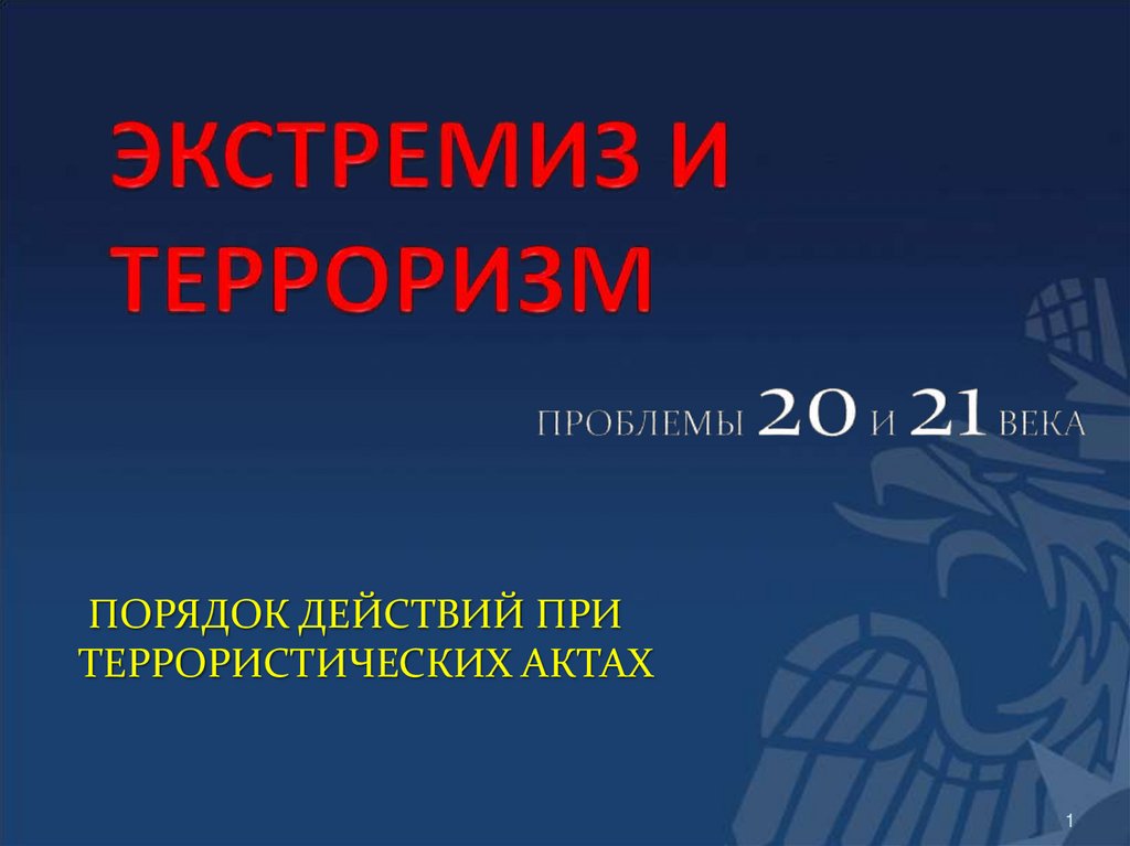 1. ЭКСТРЕМИЗ И ТЕРРОРИЗМ ПРОБЛЕМЫ 20 И 21 ВЕКА