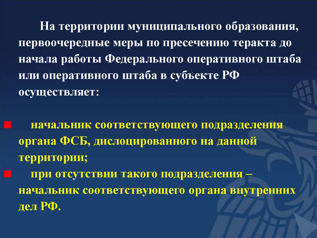 ПОРЯДОК ДЕЙСТВИЙ ПРИТЕРРОРИСТИЧЕСКИХ АКТАХ