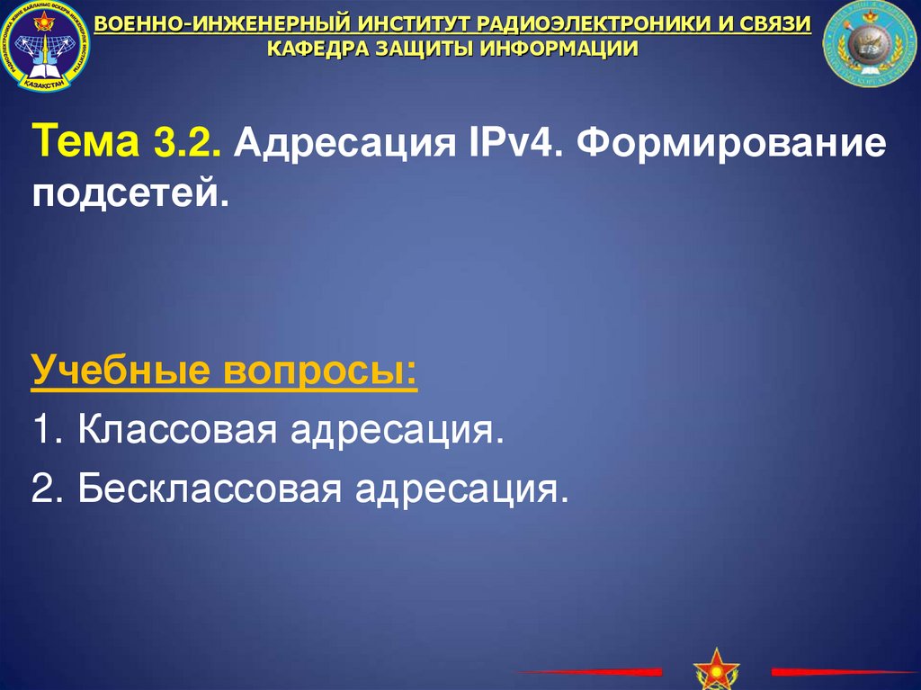 Адресация IPv4. Формирование подсетей. Тема 3.2