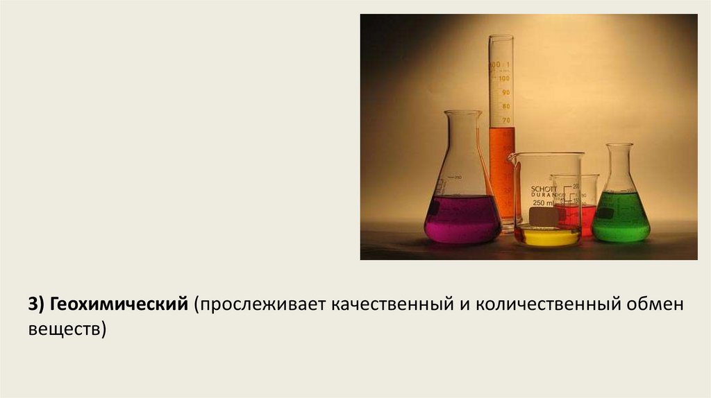 3) Геохимический (прослеживает качественный и количественный обменвеществ)