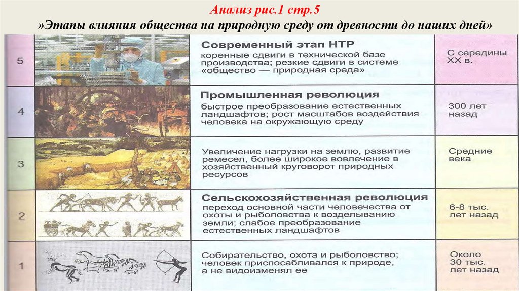 Анализ рис.1 стр.5»Этапы влияния общества на природную среду от древности до наших дней»