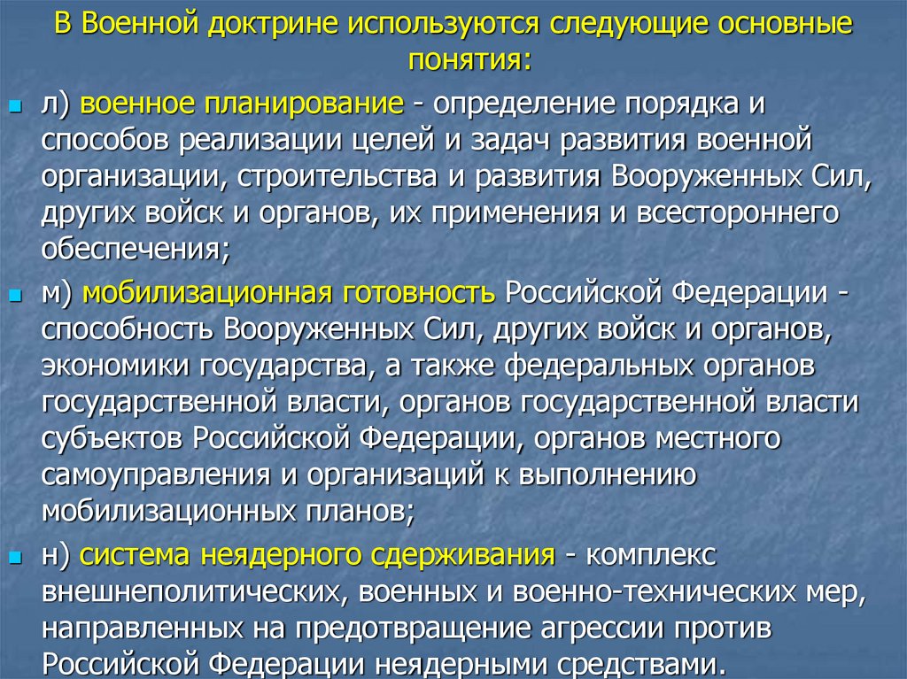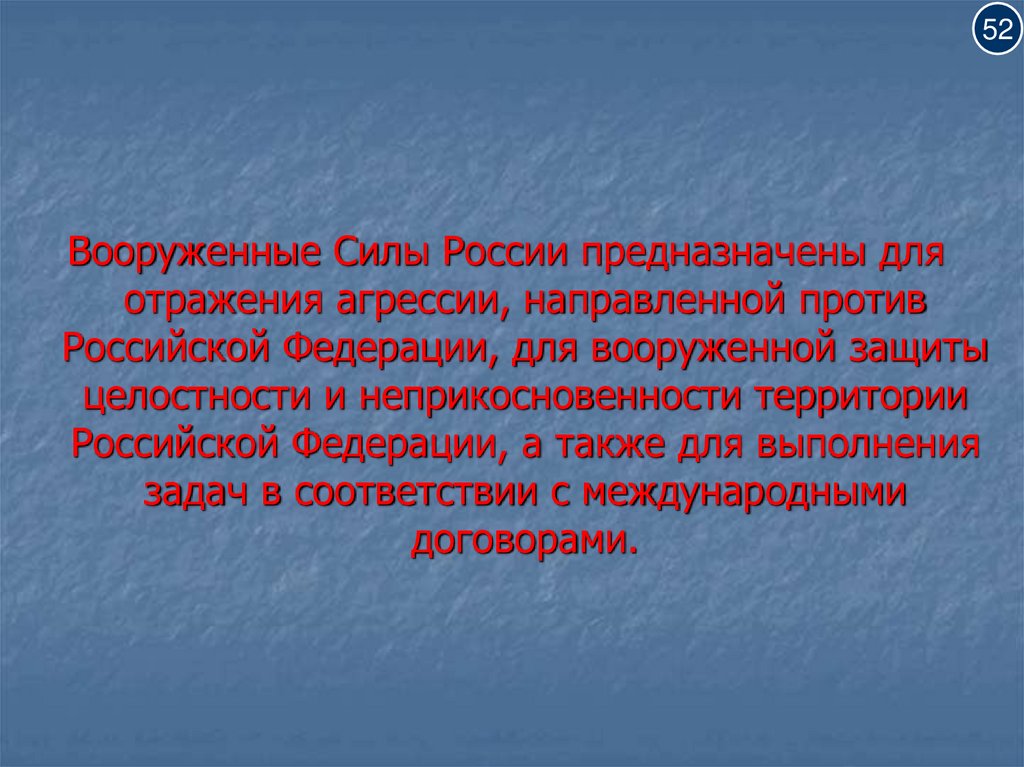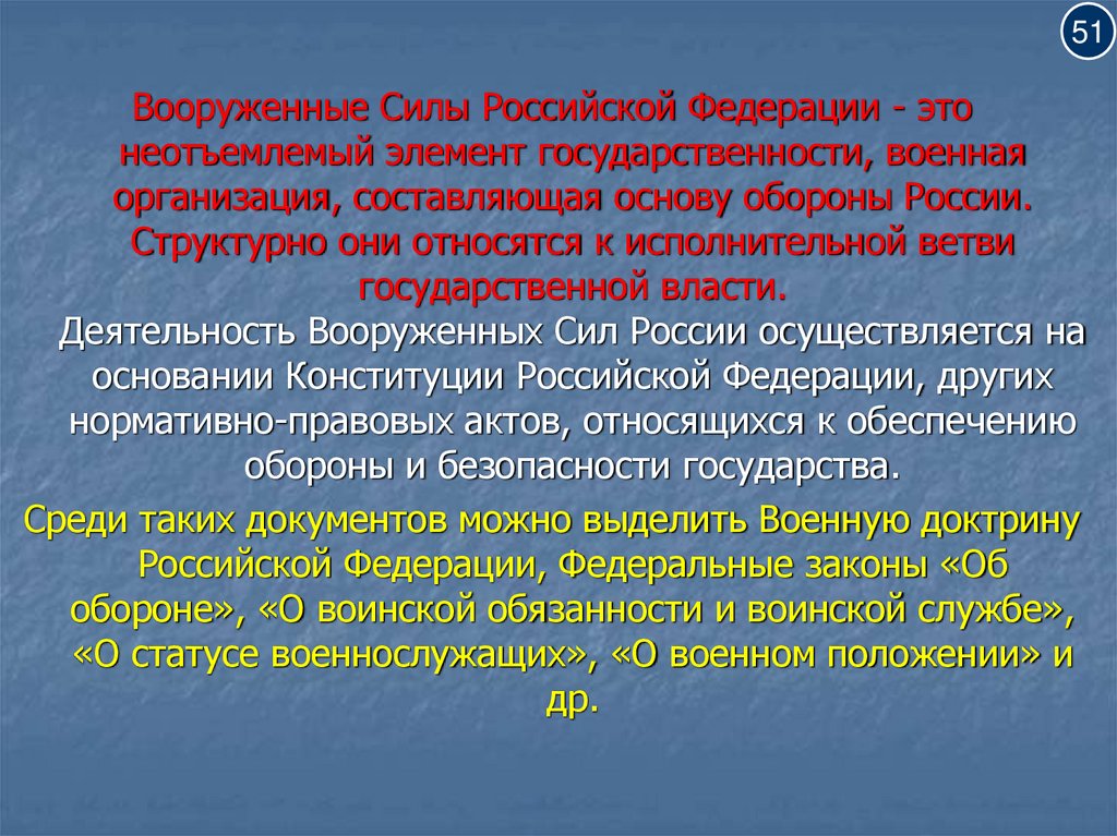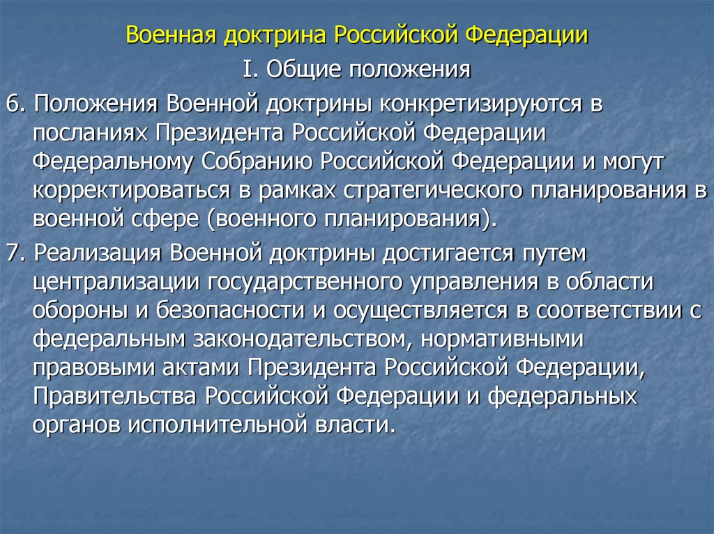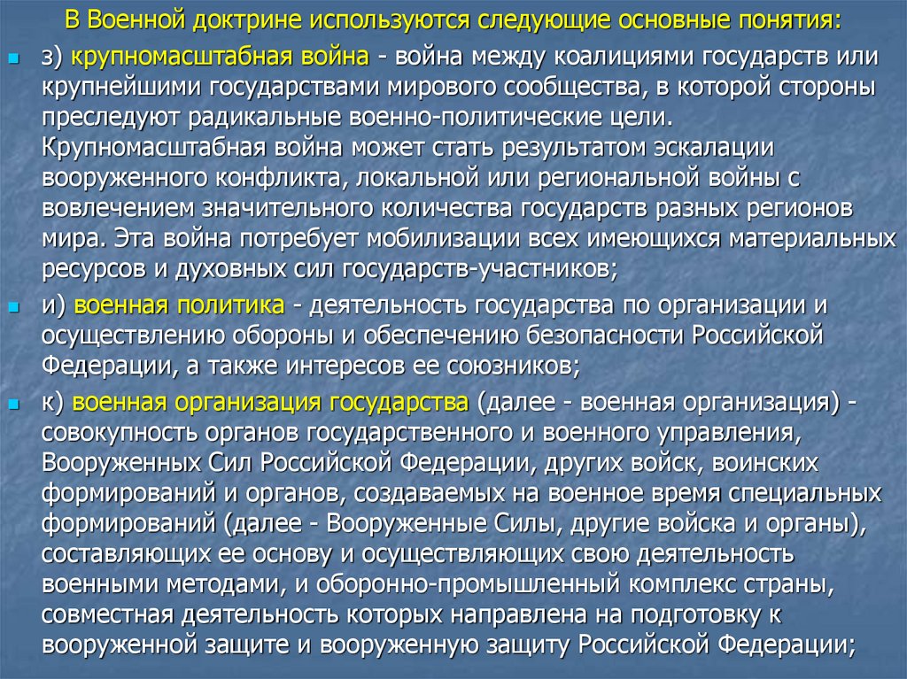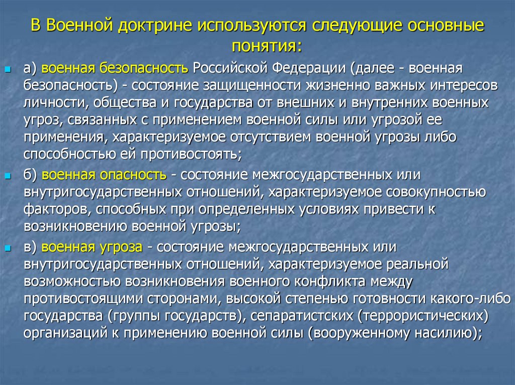 - положения военной доктрины РФ; место Вооруженных Сил в структуре