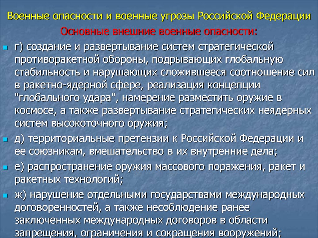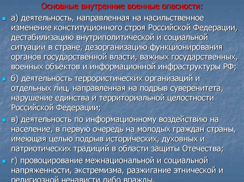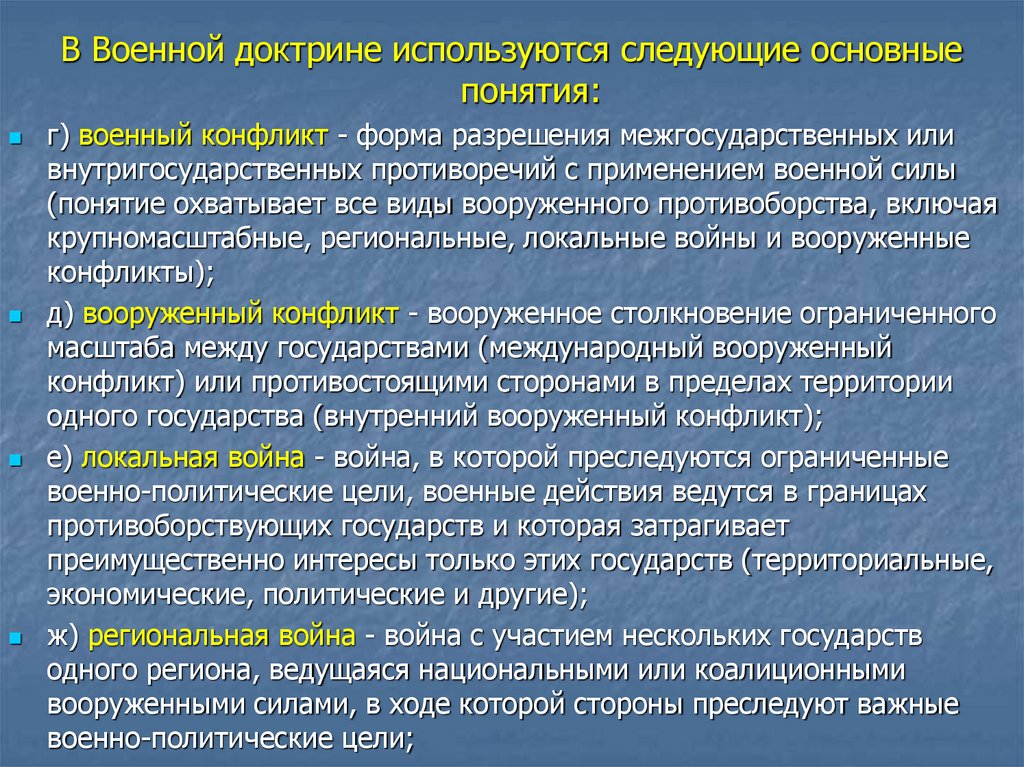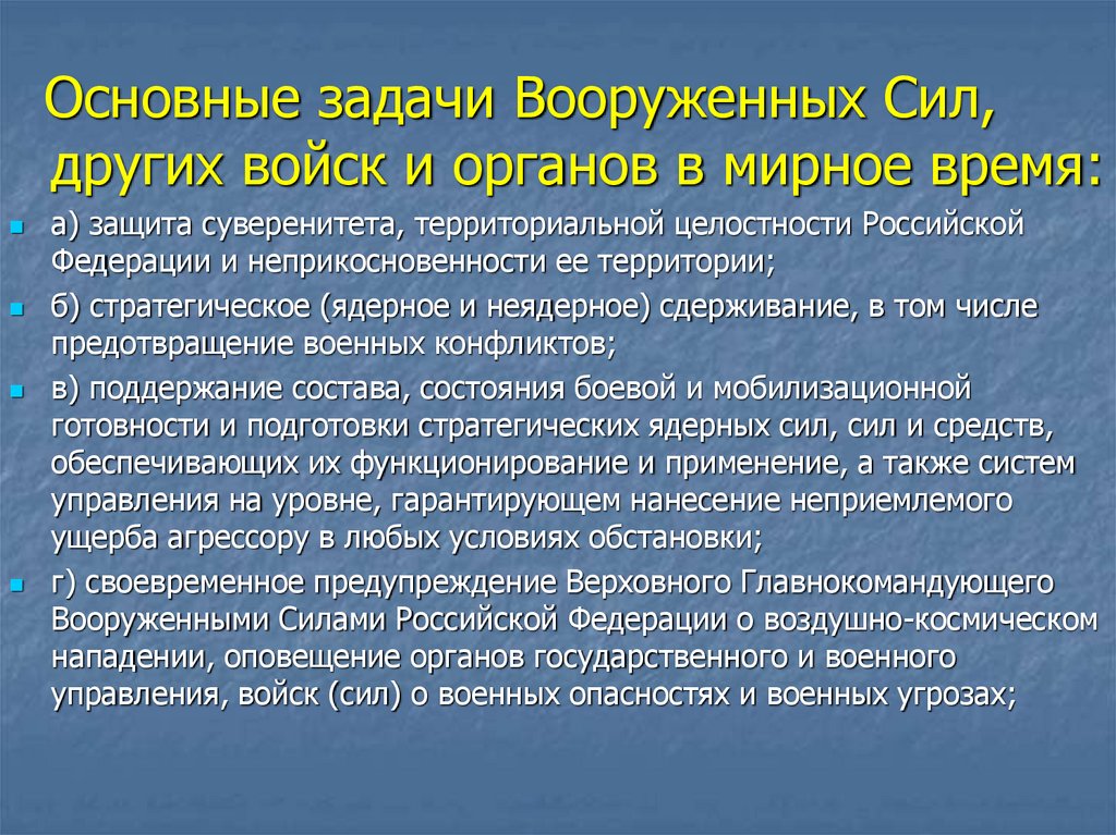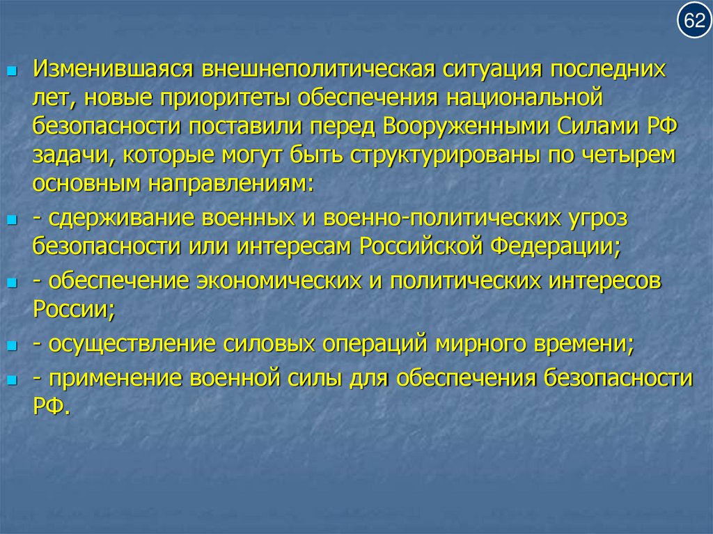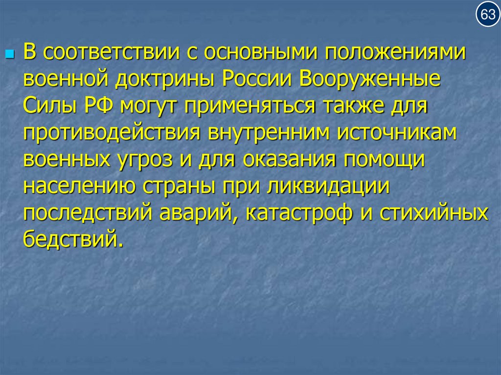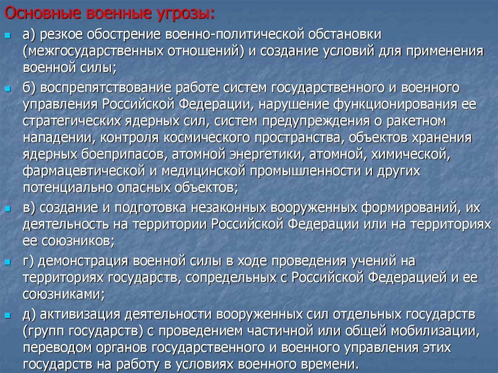 - положения военной доктрины РФ; место Вооруженных Сил в структуре