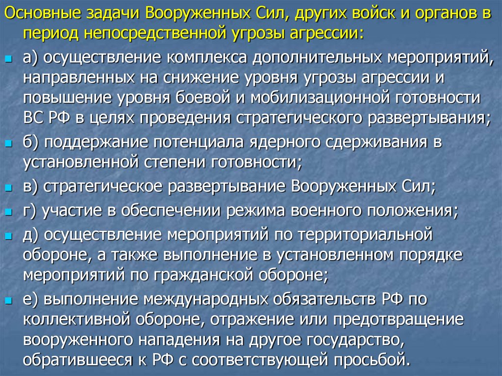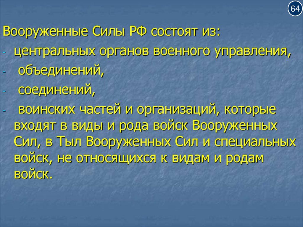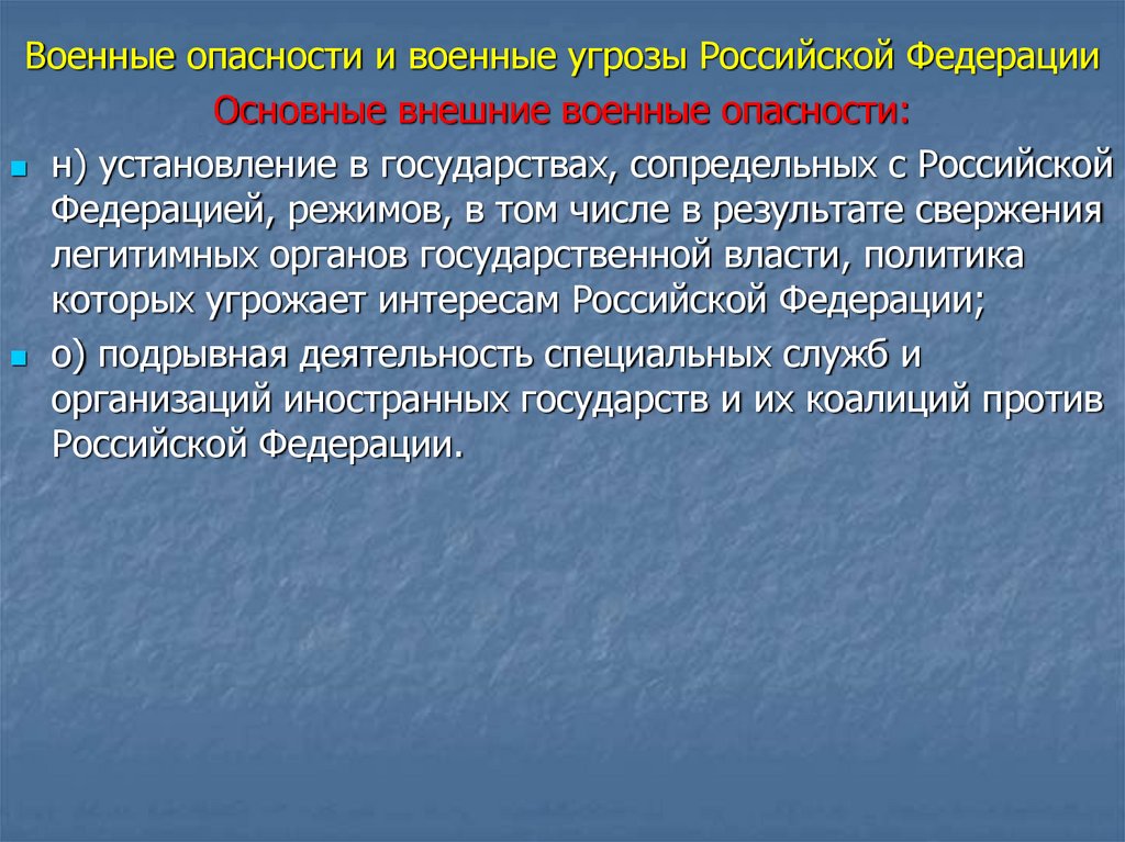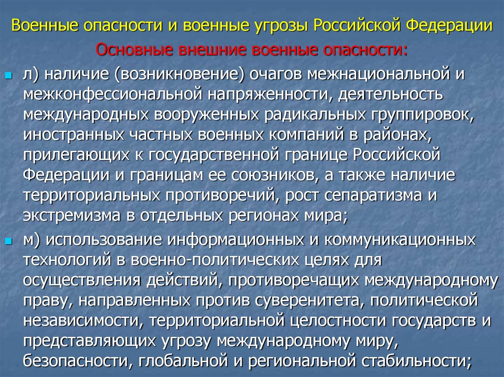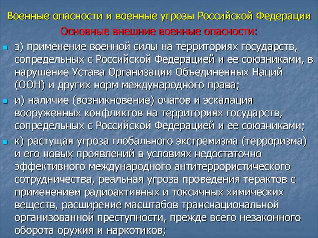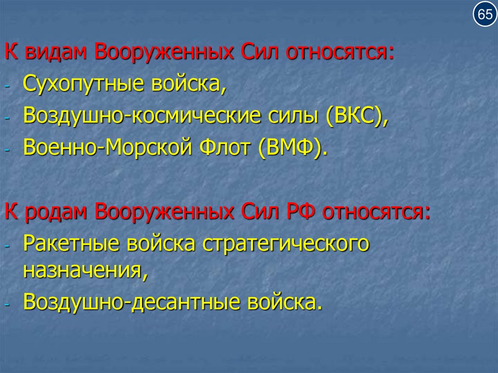 - положения военной доктрины РФ; место Вооруженных Сил в структуре