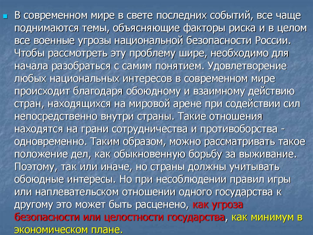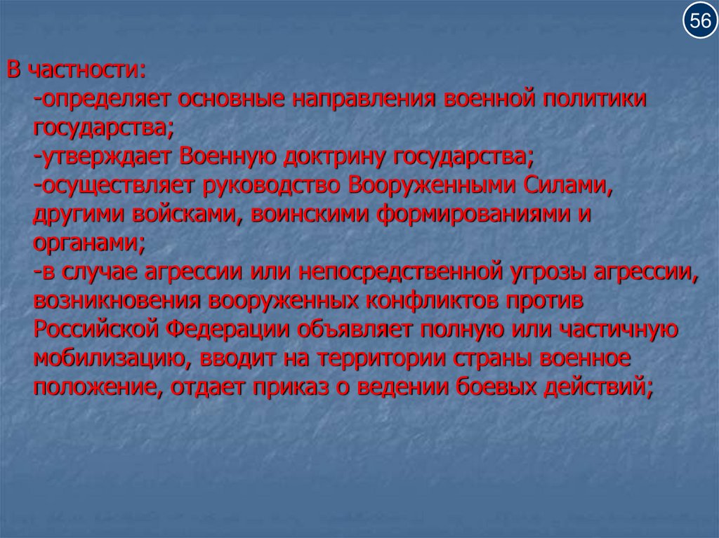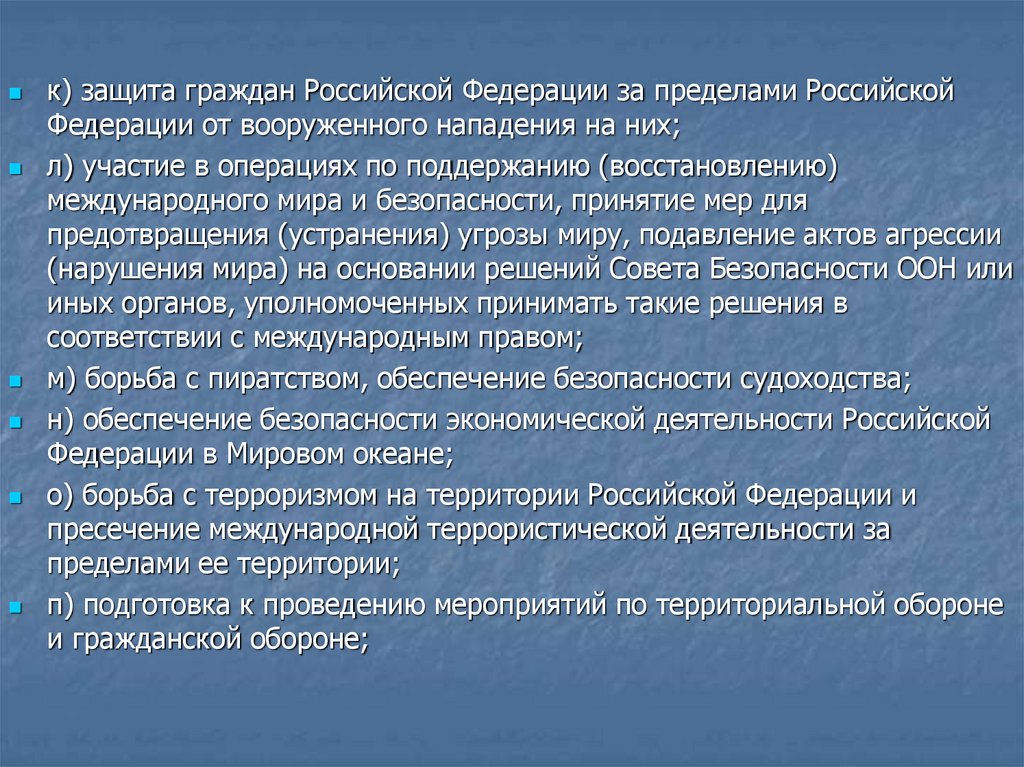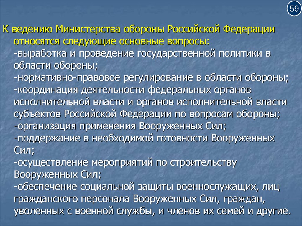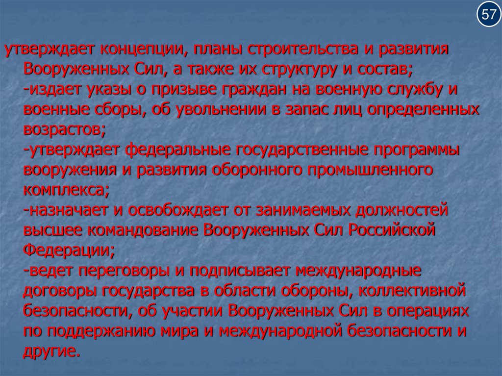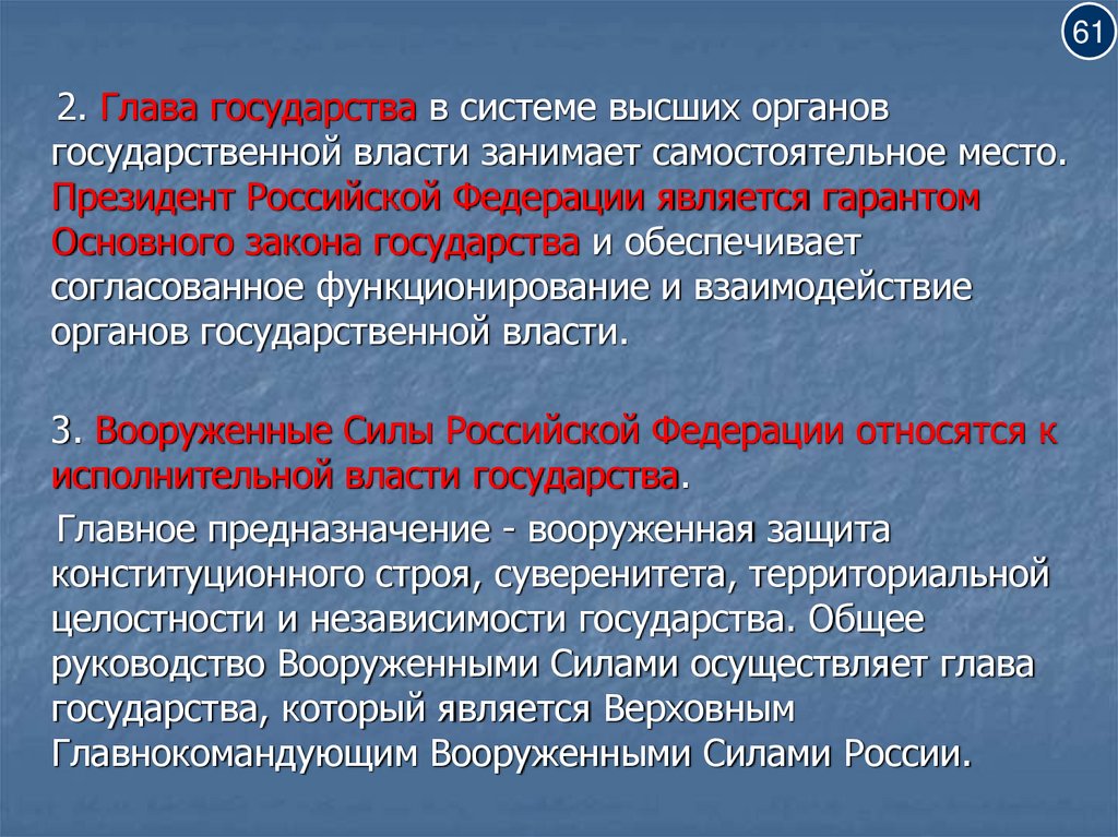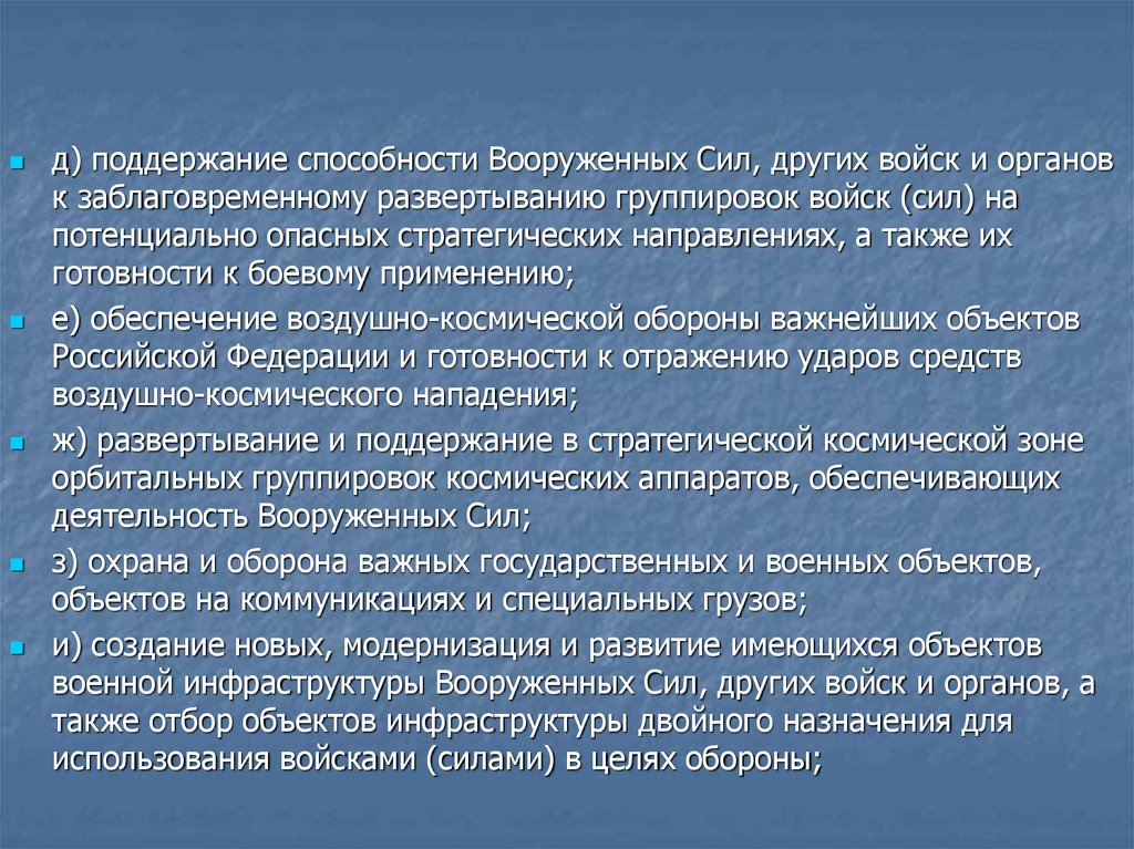 - положения военной доктрины РФ; место Вооруженных Сил в структуре