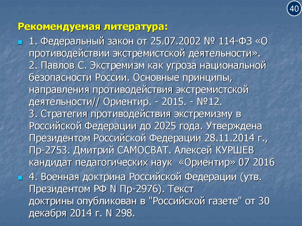 1. Федеральный закон от 25.07.2002 № 114-ФЗ «О