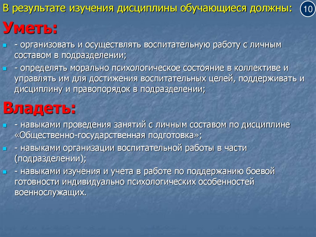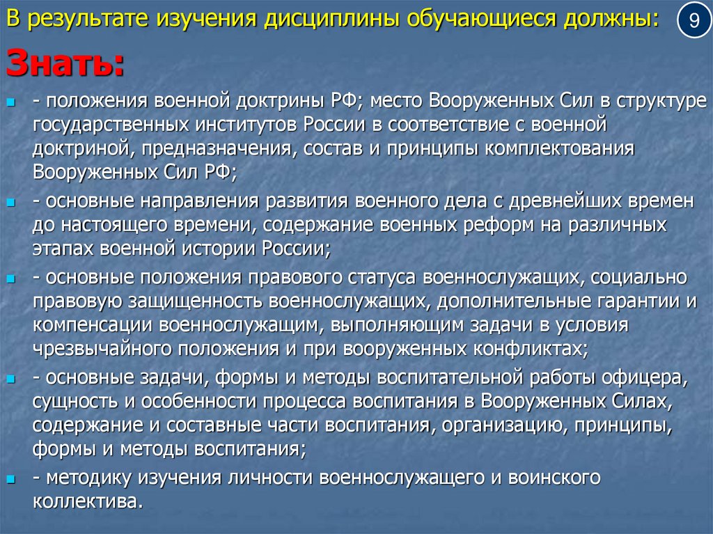 персоналом Вооружённых Сил РФ общественнополитических и военно-социальных знаний.
