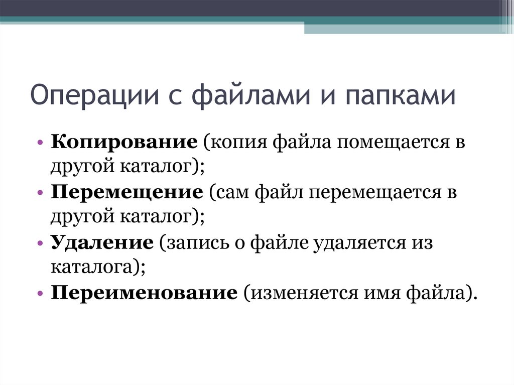 Операции с файлами и папками• Копирование (копия файла помещается в