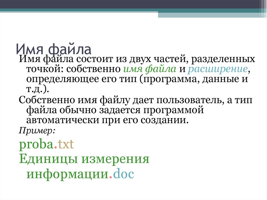 Имя файлаИмя файла состоит из двух частей, разделенных