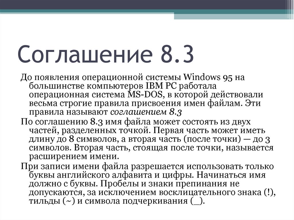 Соглашение 8.3До появления операционной системы Windows 95 на