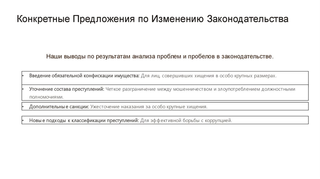 Конкретные Предложения по Изменению ЗаконодательстваНаши выводы по результатам анализа проблем и пробелов в законодательстве.