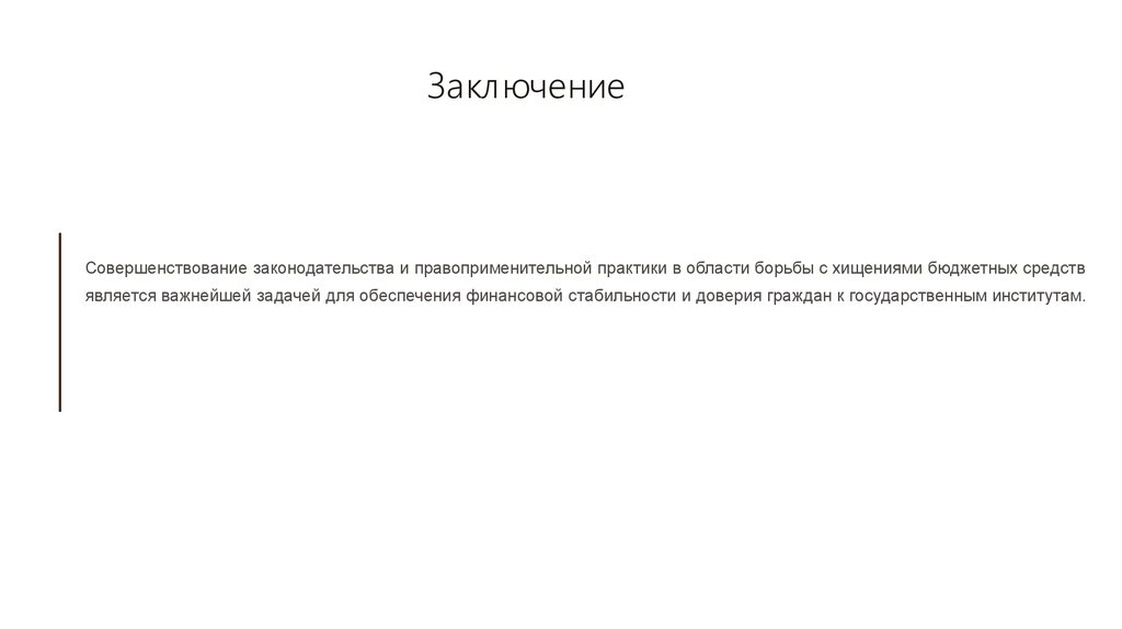 ЗаключениеСовершенствование законодательства и правоприменительной практики в области борьбы с хищениями бюджетных средств