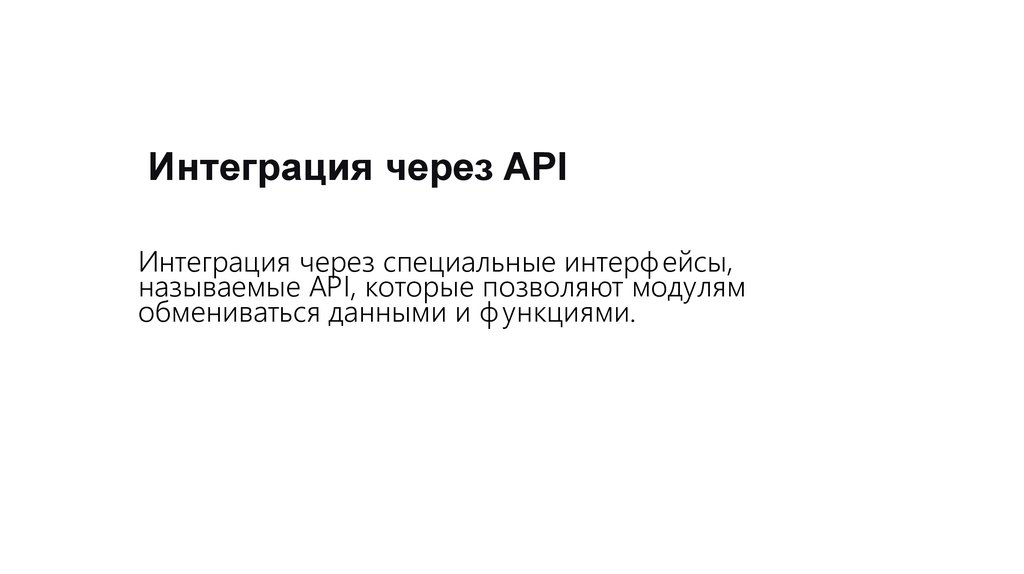 Интеграция через APIИнтеграция через специальные интерф ейсы,
