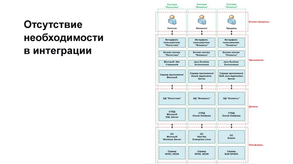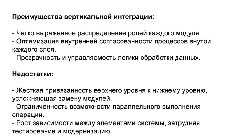 Преимущества вертикальной интеграции:- Четко выраженное распределение ролей каждого модуля.