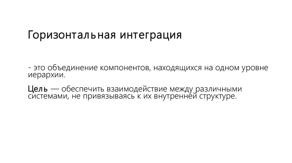 Горизонтал ь ная интеграция- это объединение компонентов, находящихся на одном уровне