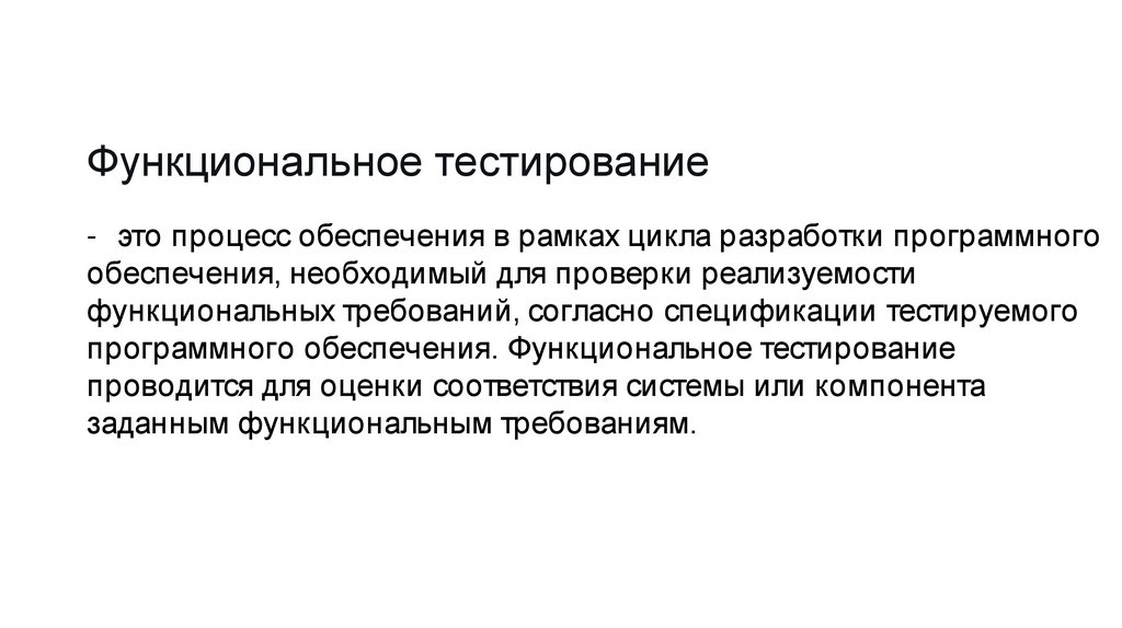 Функциональное тестирование- это процесс обеспечения в рамках цикла разработки программного