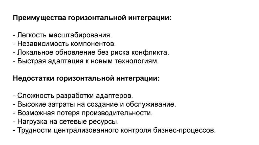 Преимущества горизонтальной интеграции:- Легкость масштабирования.