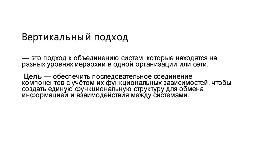 Вертикал ь ны й подход— это подход к объединению систем, которые находятся на