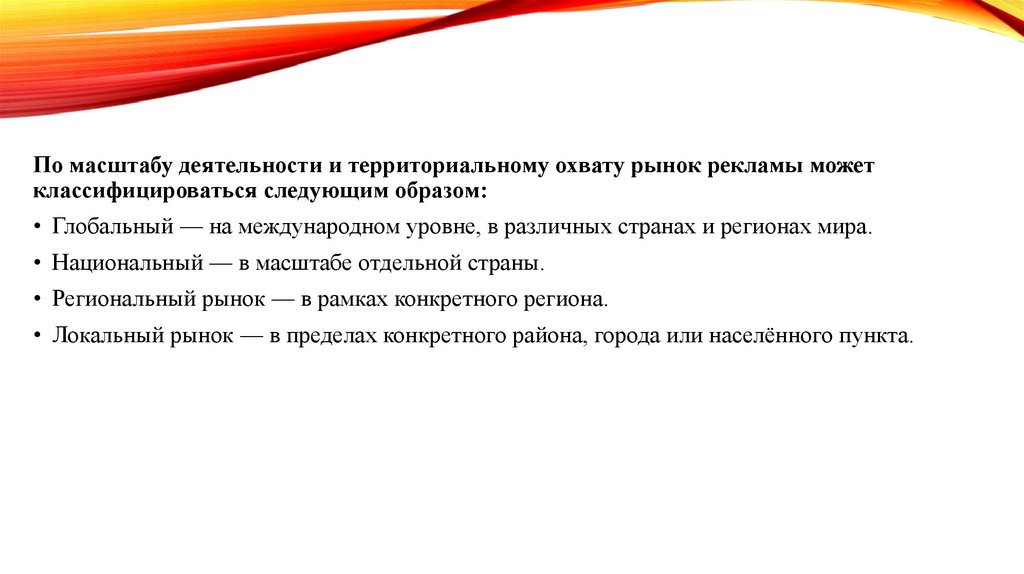 • по территориальному охвату (глобальный, национальный, региональный, локальный)