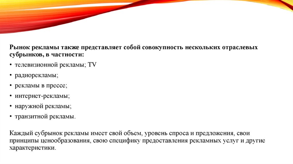 возникает их стоимость (цена). Рынок рекламы представляет собой самостоятельный сектор