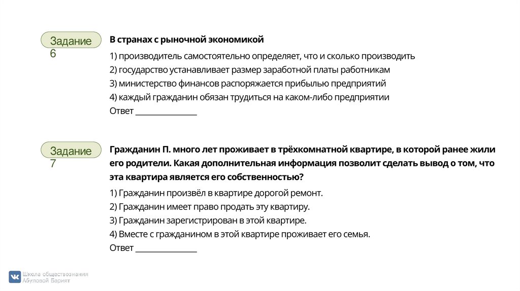 хозяйства; экономическая самостоятельность производителей: контроль над распределением благ