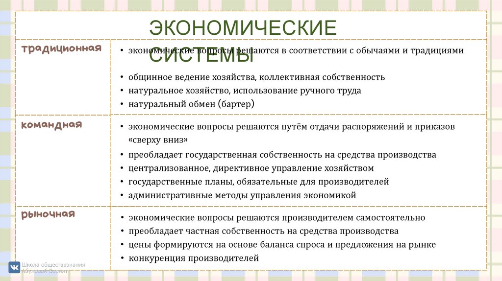 ТИПЫ ЭКОНОМИЧЕСКИХ СИСТЕМ