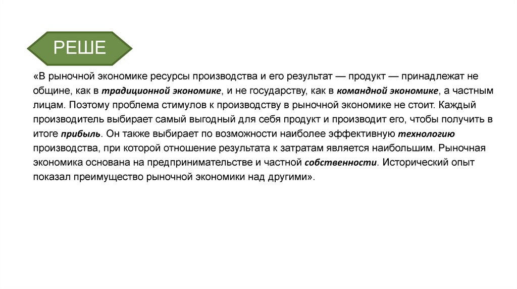 РЕШЕНИЕэкономике ресурсы производства и его результат — продукт — принадлежат не
