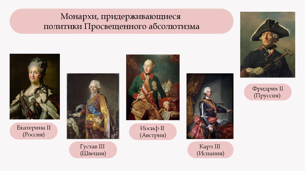 Монархи, придерживающиесяполитики Просвещенного абсолютизма