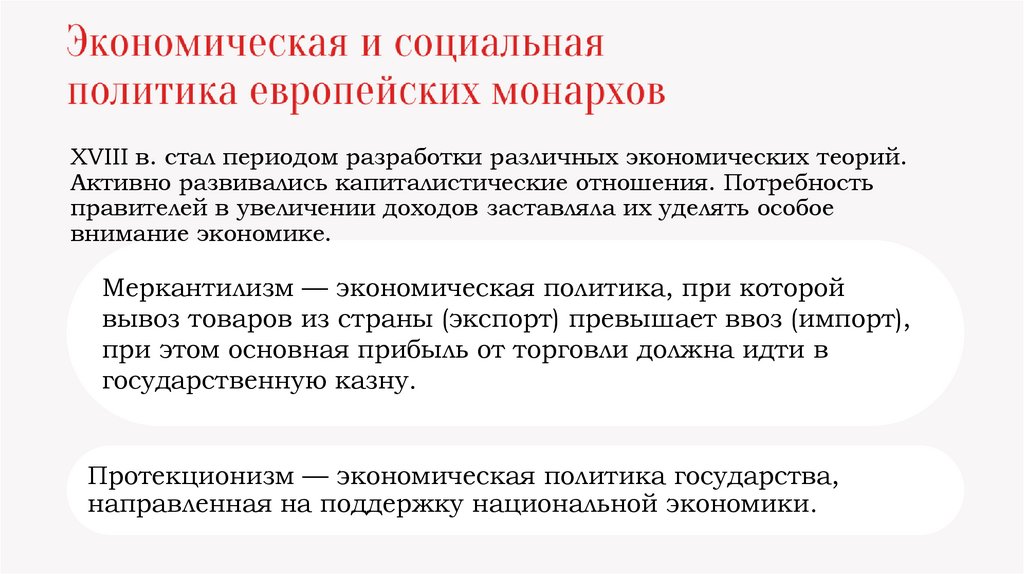 земель. Экономическая политика власти. Меркантилизм